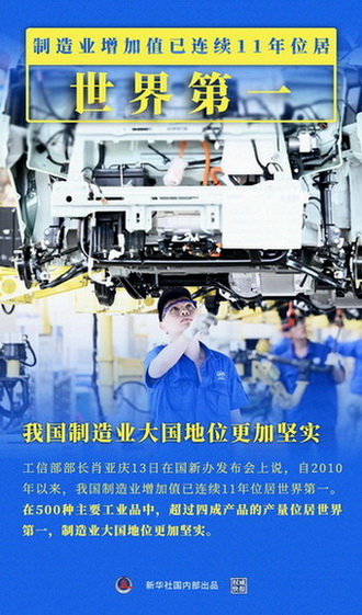 自2010年以來,我國(guó)制造業(yè)增加值已連續(xù)11年位居世界第一
